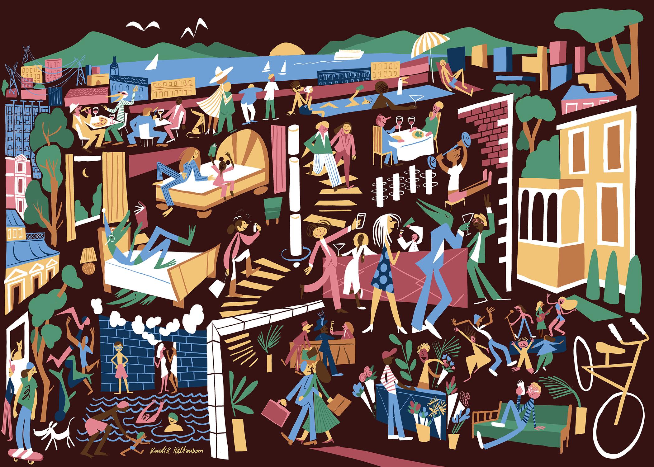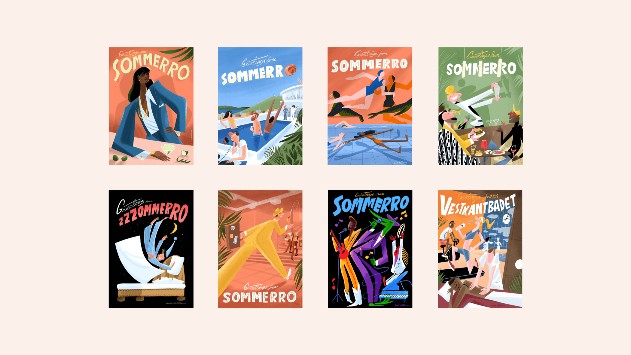 Bendik Kaltenborn is the illustrator behind all of Sommerro’s illustrations. His unique style and characters adds as a playfull element to the identity, and showcases the vibrant atmosphere across all of the Sommerro house areas and service offerings.